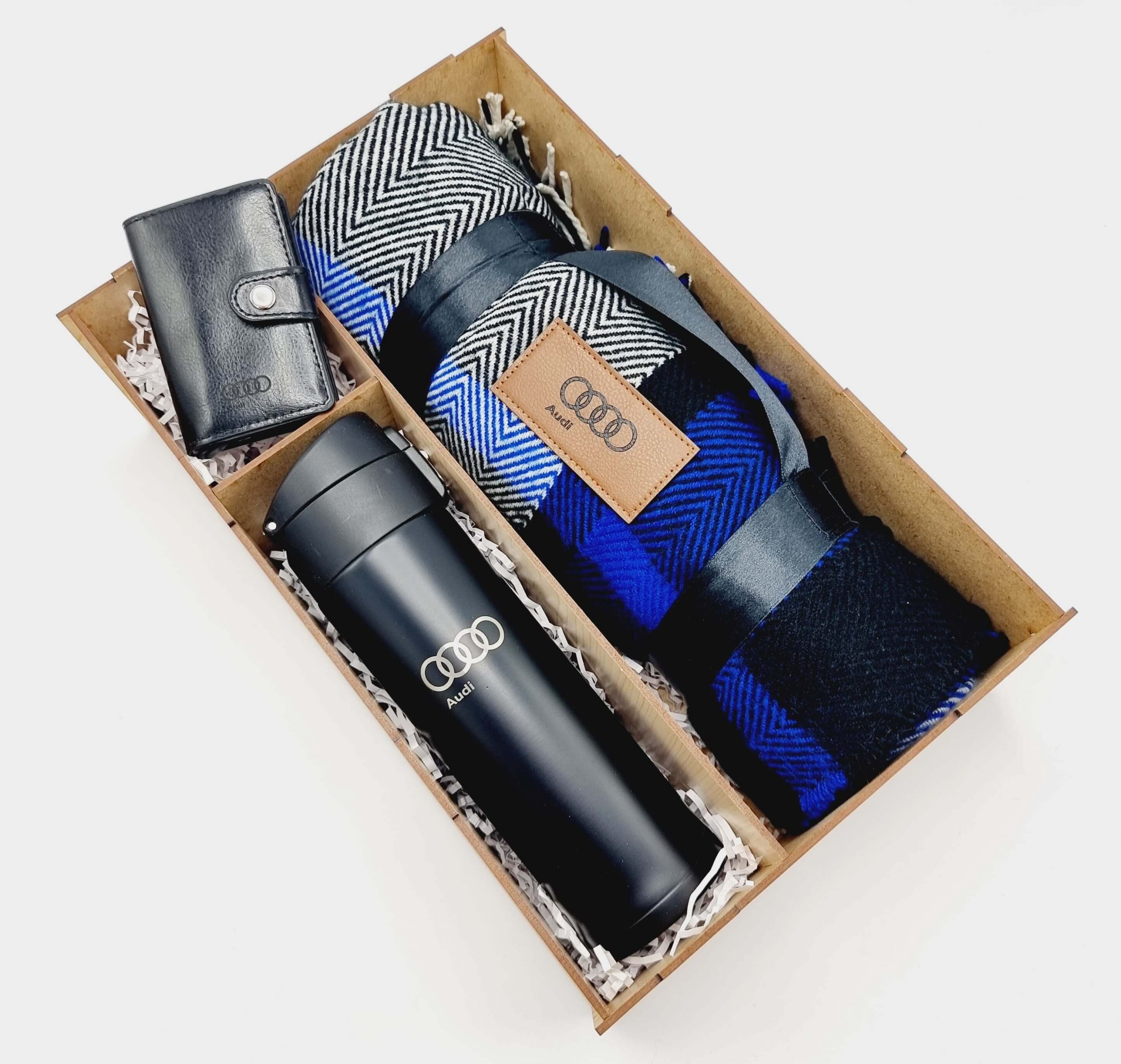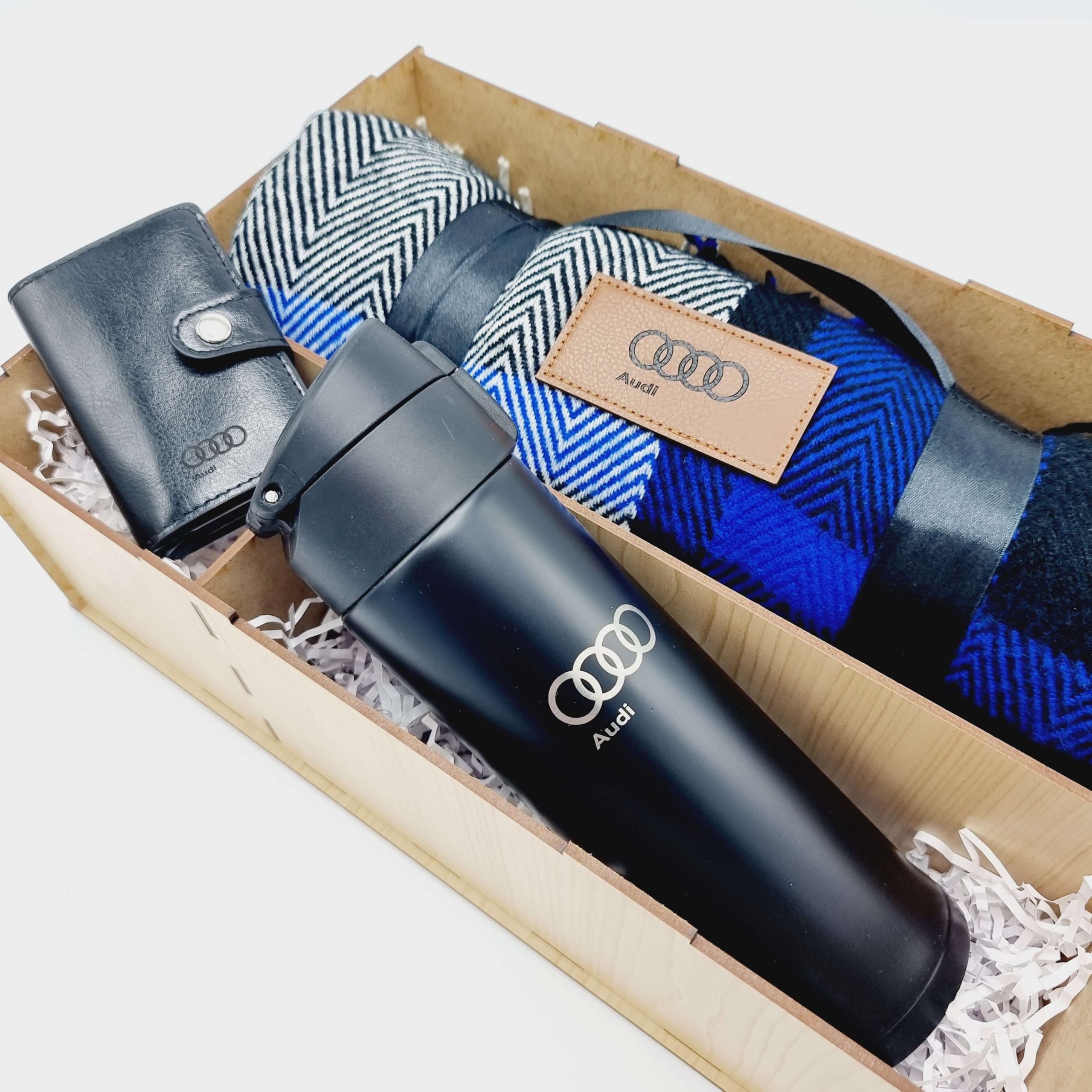 Подарочный набор "Audi " - понадобится автолюбителям, которые большую часть своей жизни проводят за рулем своих авто. Мало ли, куда их занесет дорога, сколько продлится пробка. А тут ваш подарок - приятный и удобный. Подарок с учетом увлечений человека — самый правильный. Для большинства автомобилистов машина — это и средство передвижения, и хобби, и состояние души. Подарочный набор с логотипом любимой марки машин - полезный, универсальный, подарок с заботой об имениннике. Подарочный набор "Audi " состоит:- Термос с логотипом "Audi" - двойные стенки из металла, 500 мл;