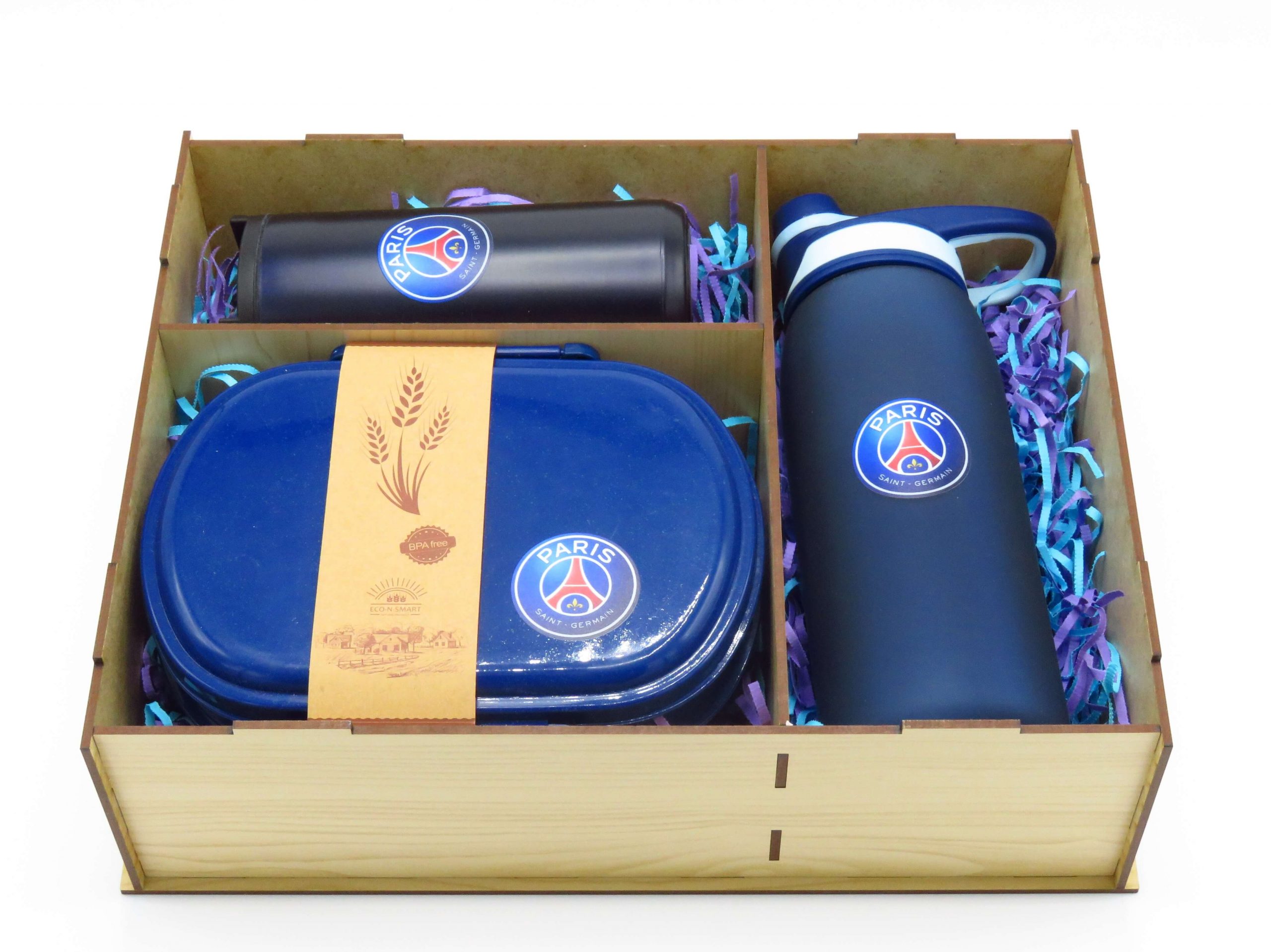Подарочный набор с логотипом любимого футбольного клуба. Всегда приятно, если получаешь подарки, которые каким то образом связаны с вашими увлечениями и интересами. Подарочный набор "ПСЖ" состоит:- Спортивная бутылка с логотипом "ПСЖ" - тритан, 750 мл;
