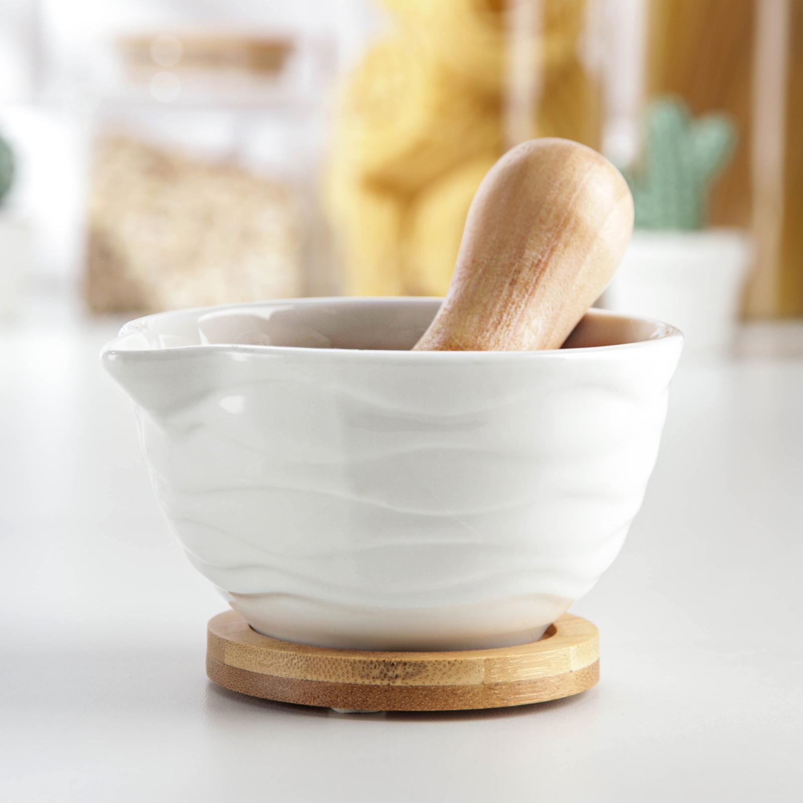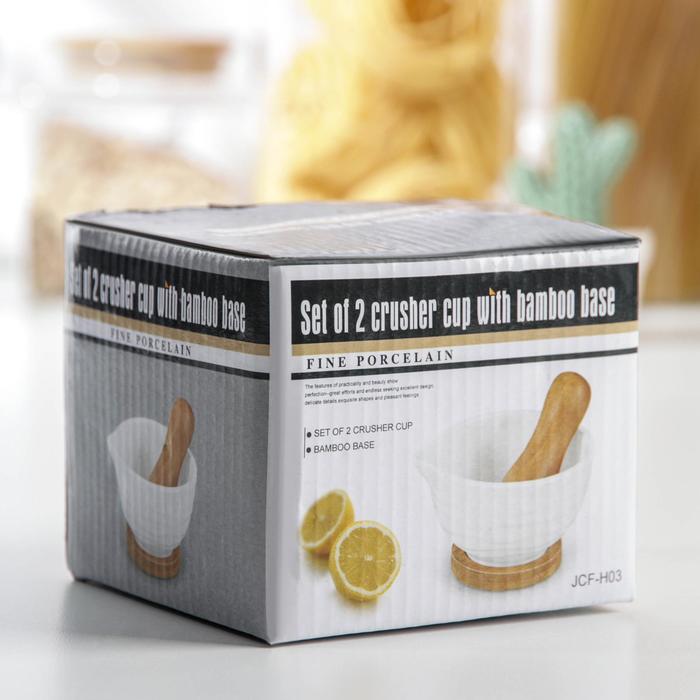 Ступка для специй 250 мл "Эстет", с пестиком, на деревянной подставке. Ступка с пестиком для измельчения станет надёжным помощником в процессе приготовления соусов, специй и приправ, позволяя им отдать весь свой аромат! С таким набором вы с лёгкостью добьётесь необходимой вам консистенции продукта, а компактные ступки не займут много места на вашей кухне.Индивидуальная упаковка - Картонная коробка