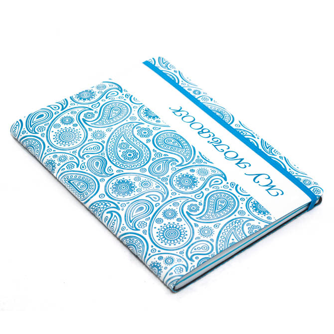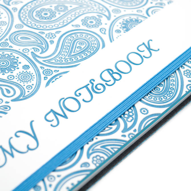 Butterfly – магический материал! При блинтовом тиснении на белом материале появляется цвет, в данном случае – голубой. Кажется, что он затаился внутри и только ждёт момента, чтобы вырваться наружу. Добавьте сюда ещё восточный орнамент «Турецкие огурцы», интересный двухцветный блок – и вы станете обладателем необычной записной книжки.- Блок в линейку / клетку