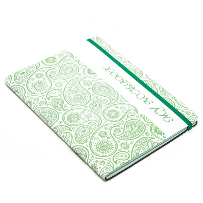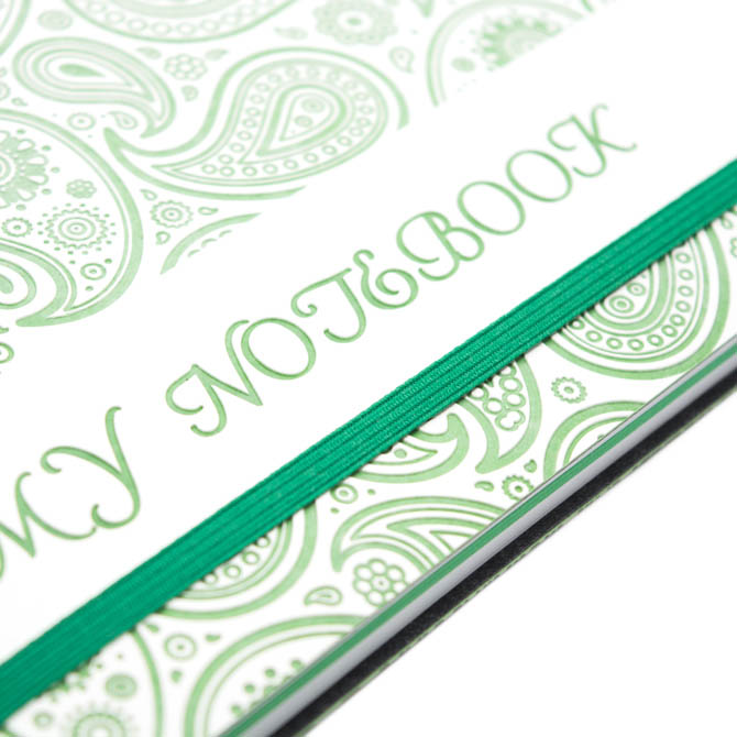 Butterfly – магический материал! При блинтовом тиснении на белом материале появляется цвет, в данном случае – зелёный. Кажется, что он затаился внутри и только ждёт момента, чтобы вырваться наружу. Добавьте сюда ещё восточный орнамент «Турецкие огурцы», интересный двухцветный блок – и вы станете обладателем необычной записной книжки.- Блок в линейку / клетку