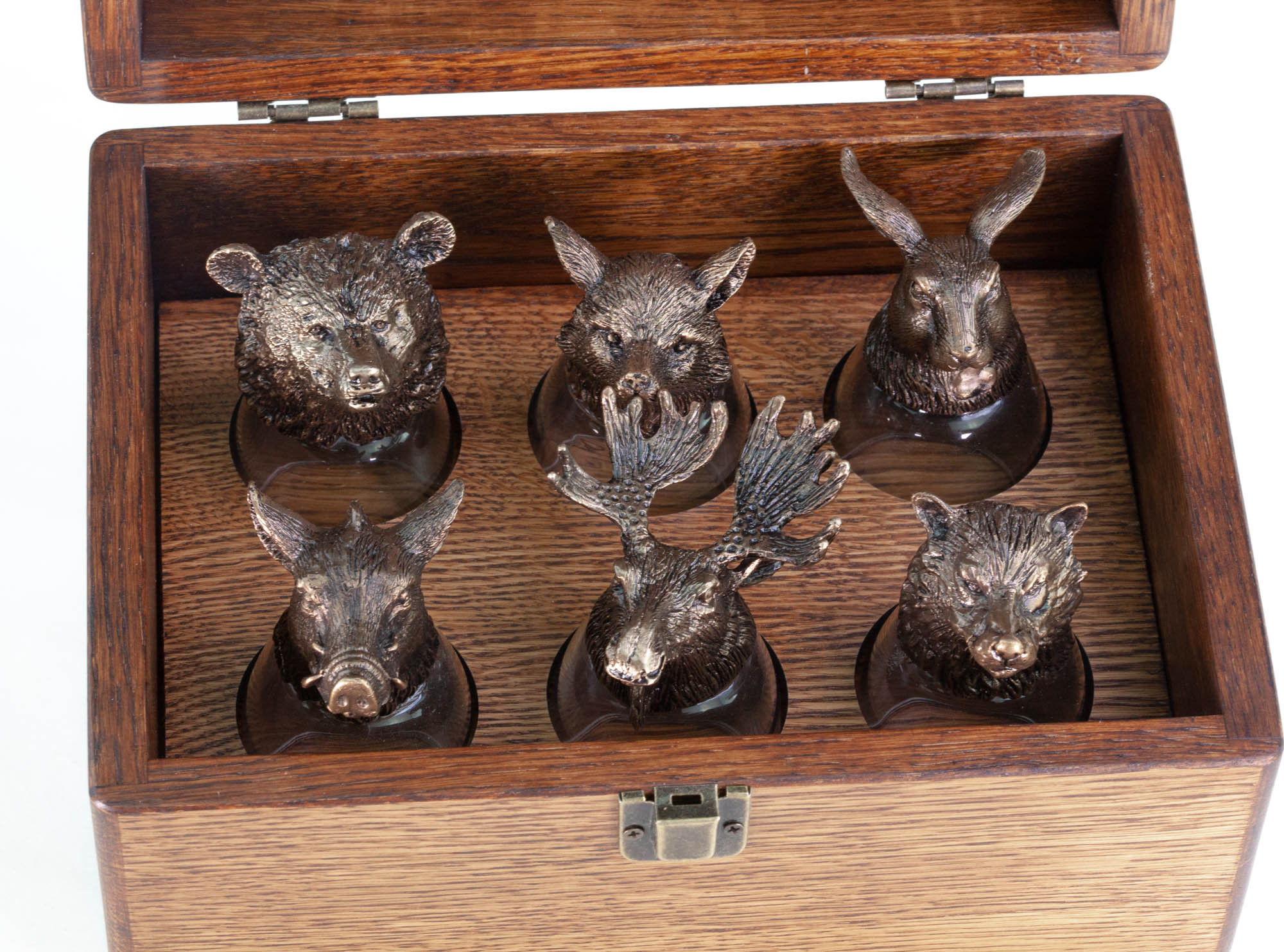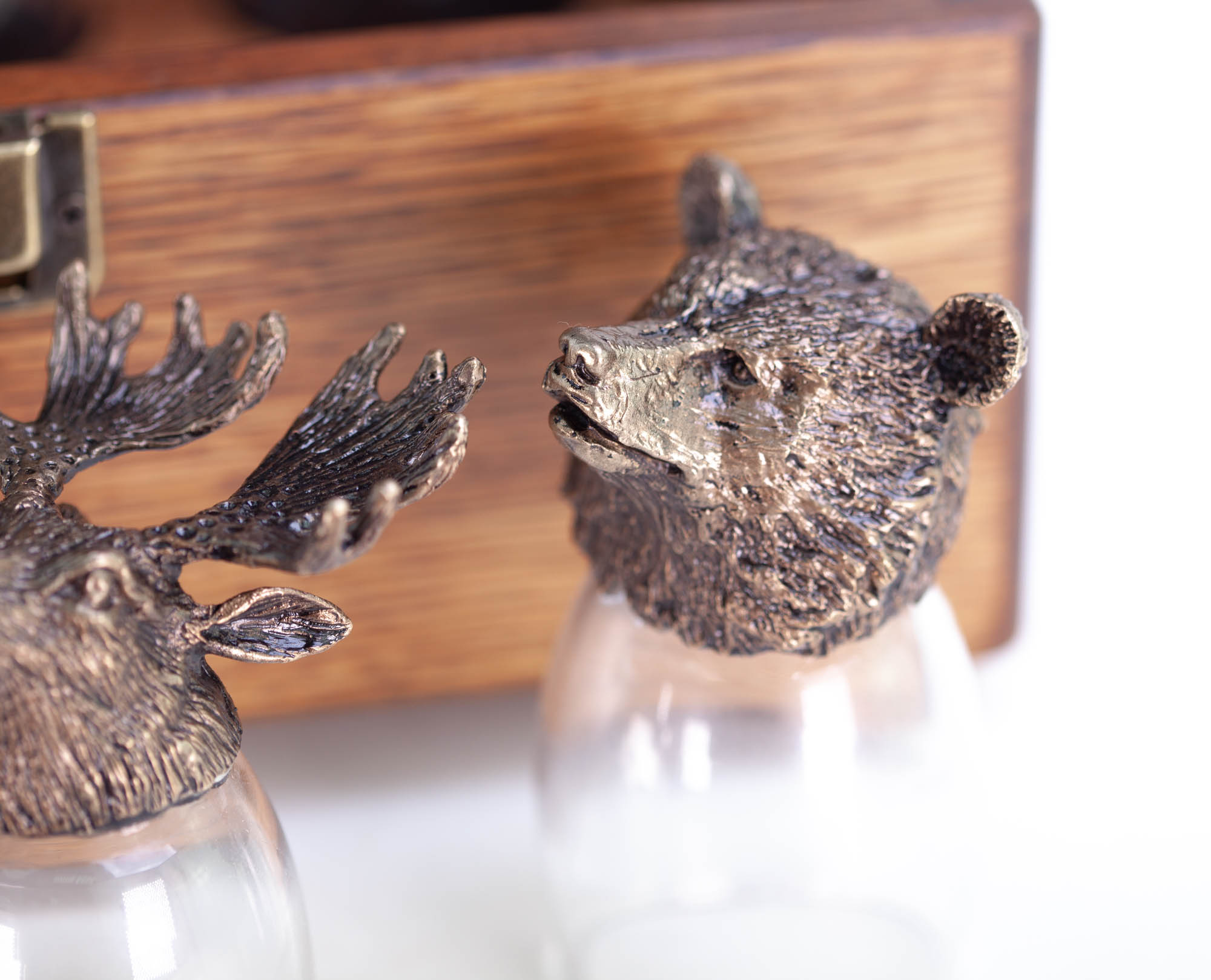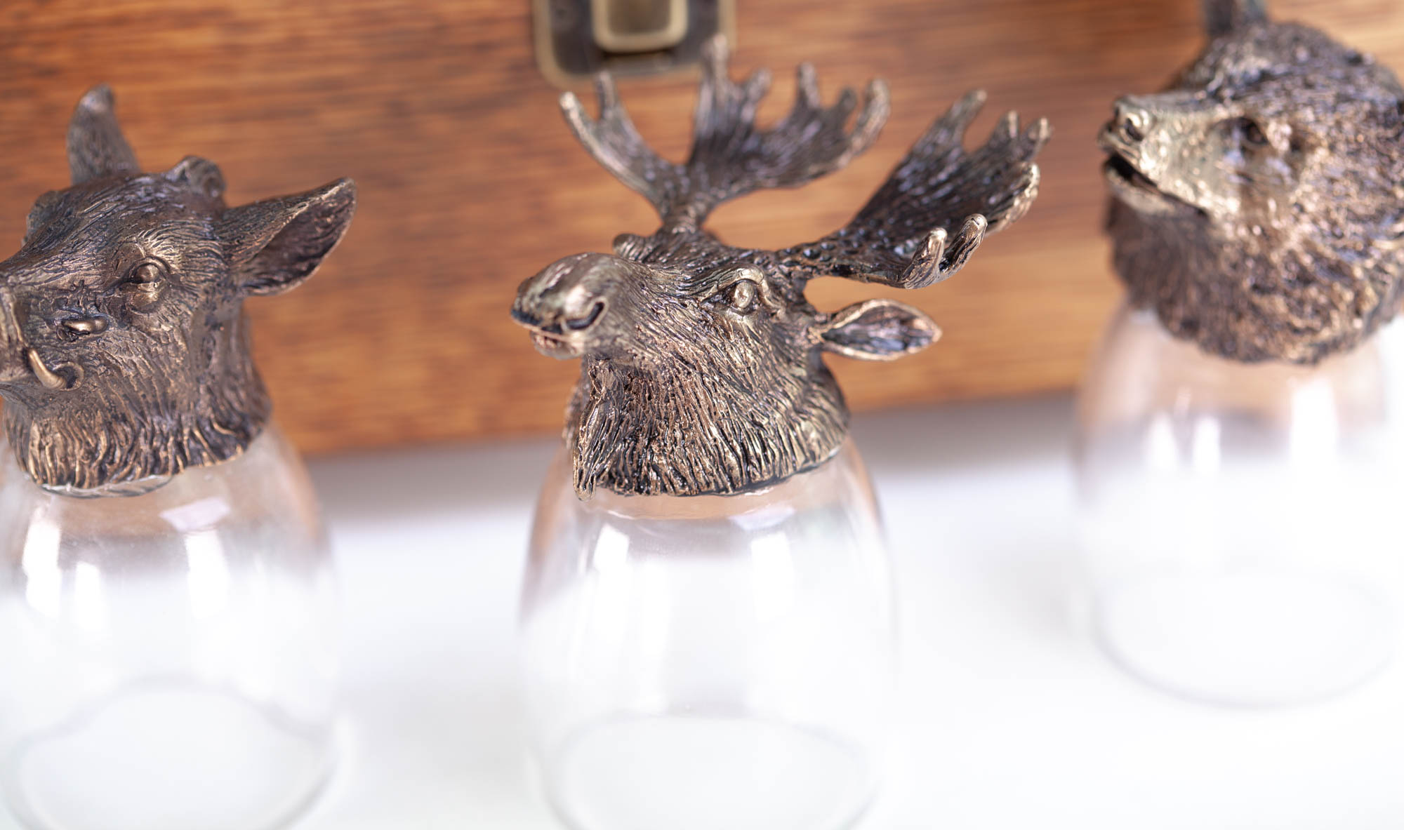 Необычные рюмки выглядят очень дорого и статусно. Металлические головы увесистые и детально проработанные. А оформление набора как раз в любимом стиле босса. В общем, попадание точно в цель!