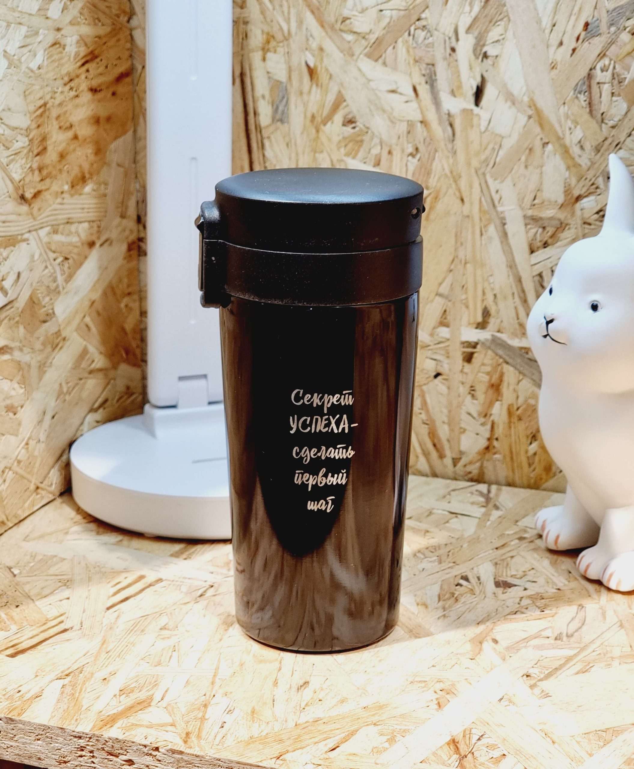 Главная страница » Подарки на День Рождения » Подарки брату на День рождения » «Секрет успеха – сделать первый шаг» термокружка с гравировкой