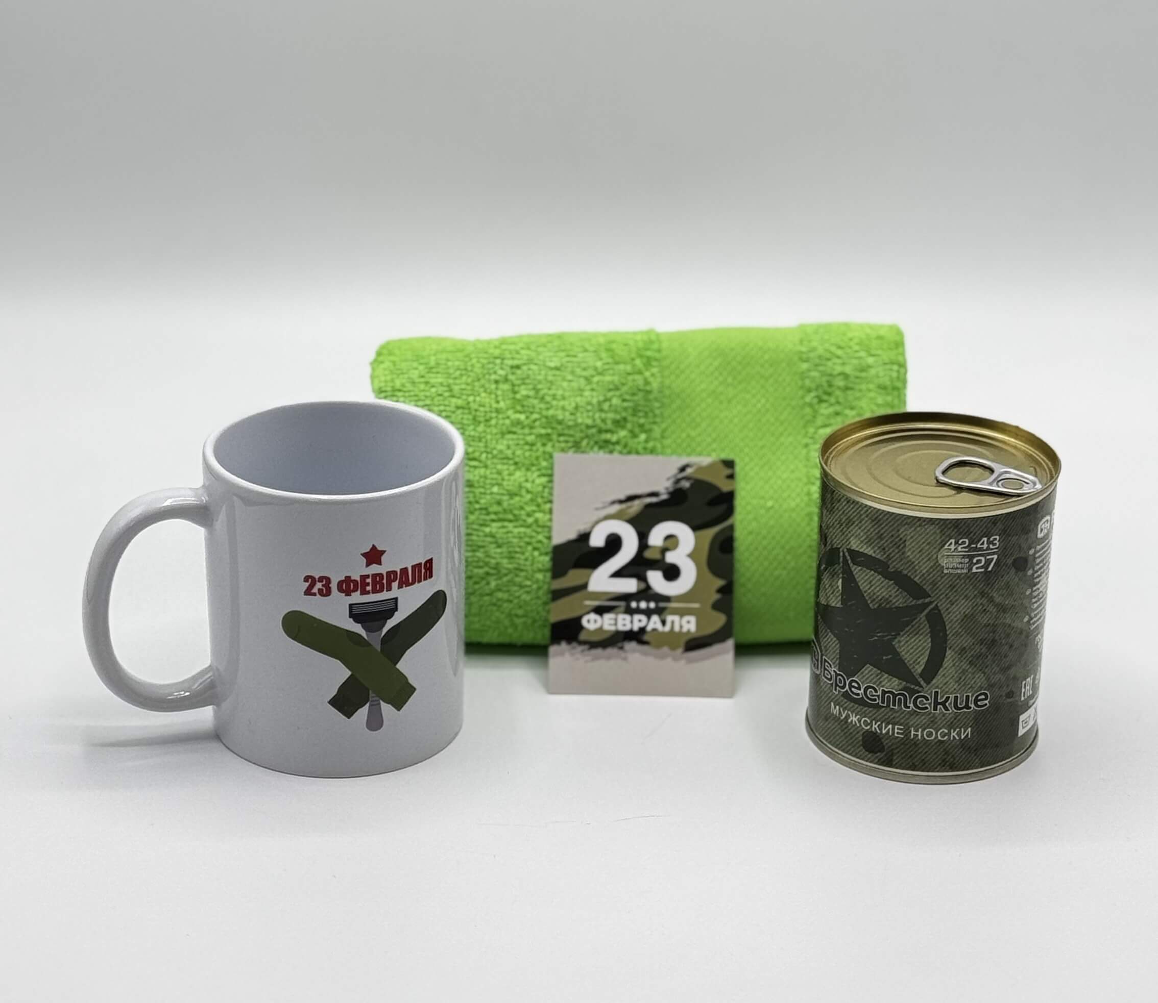 Главная страница » Подарки на праздники » Подарки на 23 февраля » «Сувенирный» набор: кружка, носки в банке, полотенце.
