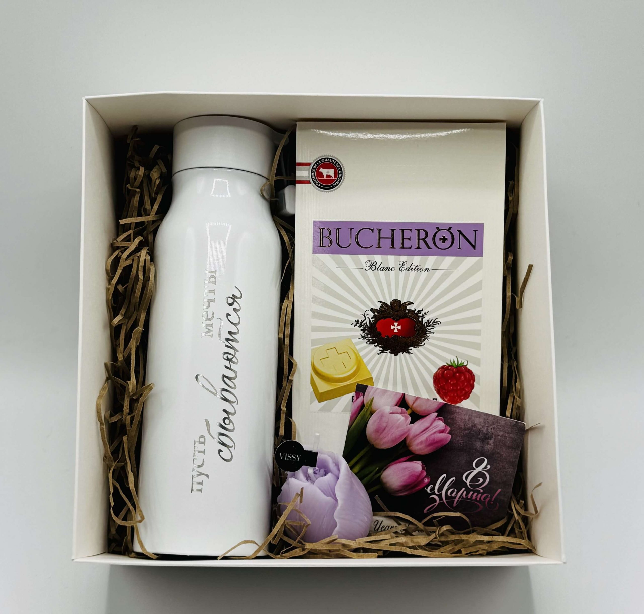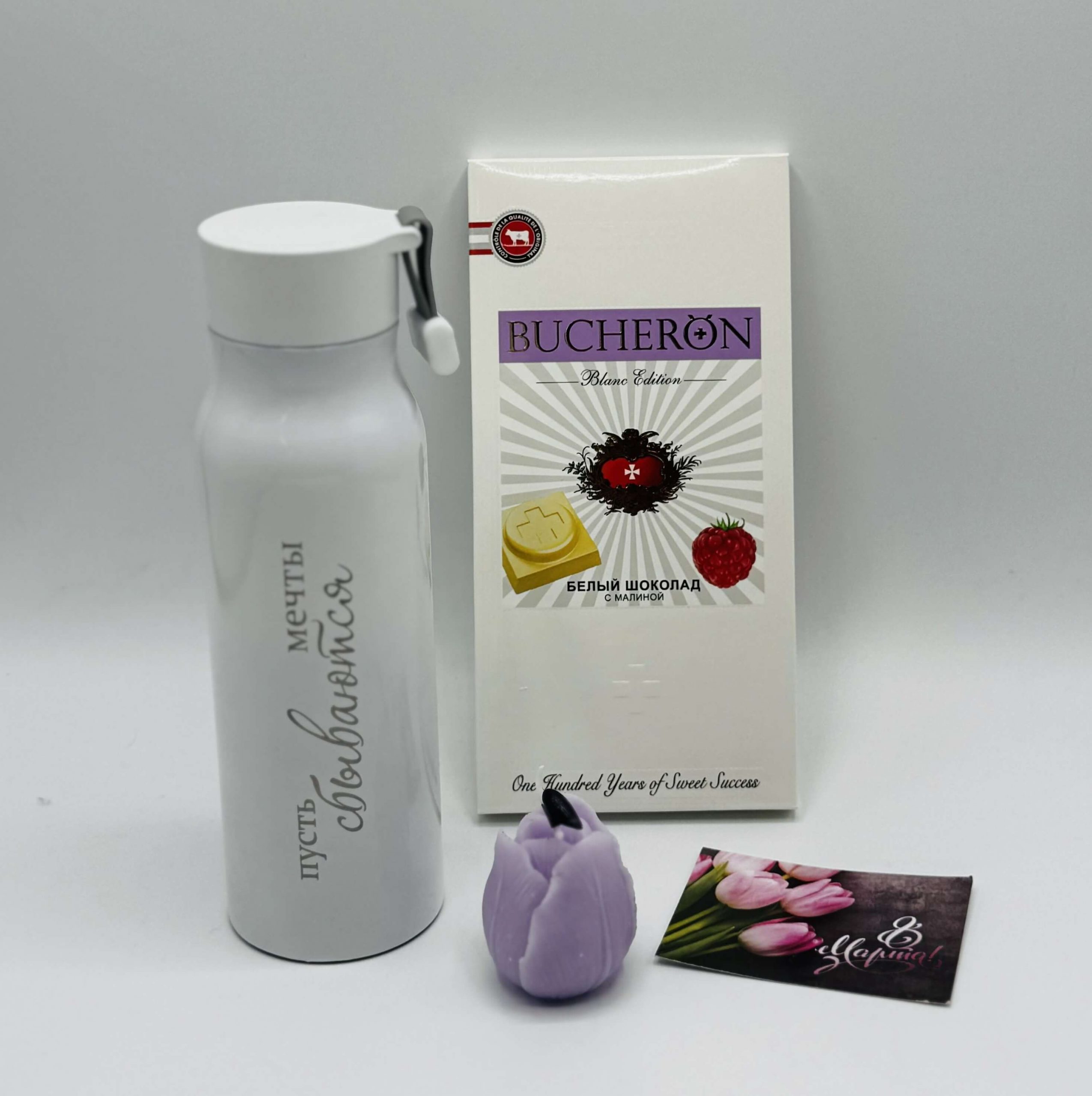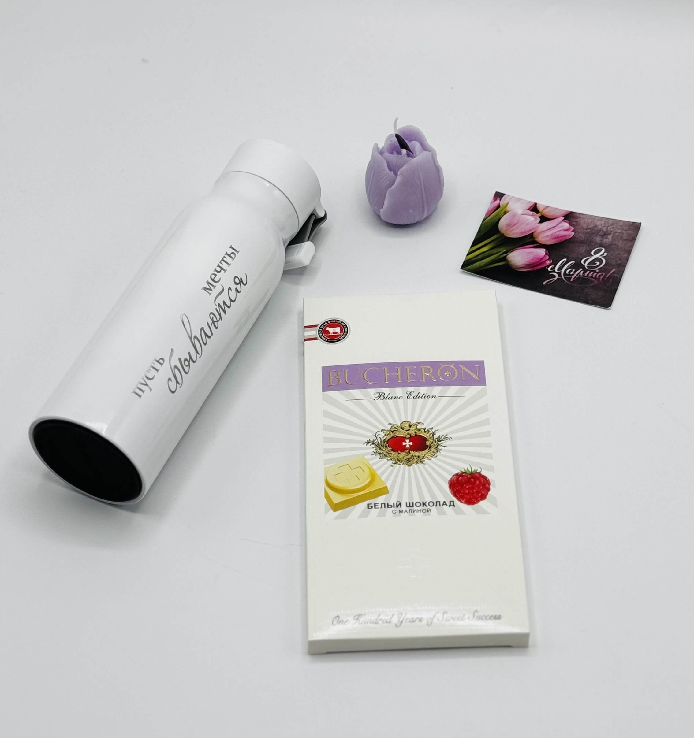 Главная страница » Подарки на праздники » Подарки на 8 марта » Подарочные боксы на 8 марта » “Букет Улыбок” подарочный набор: термос, свеча, шоколад