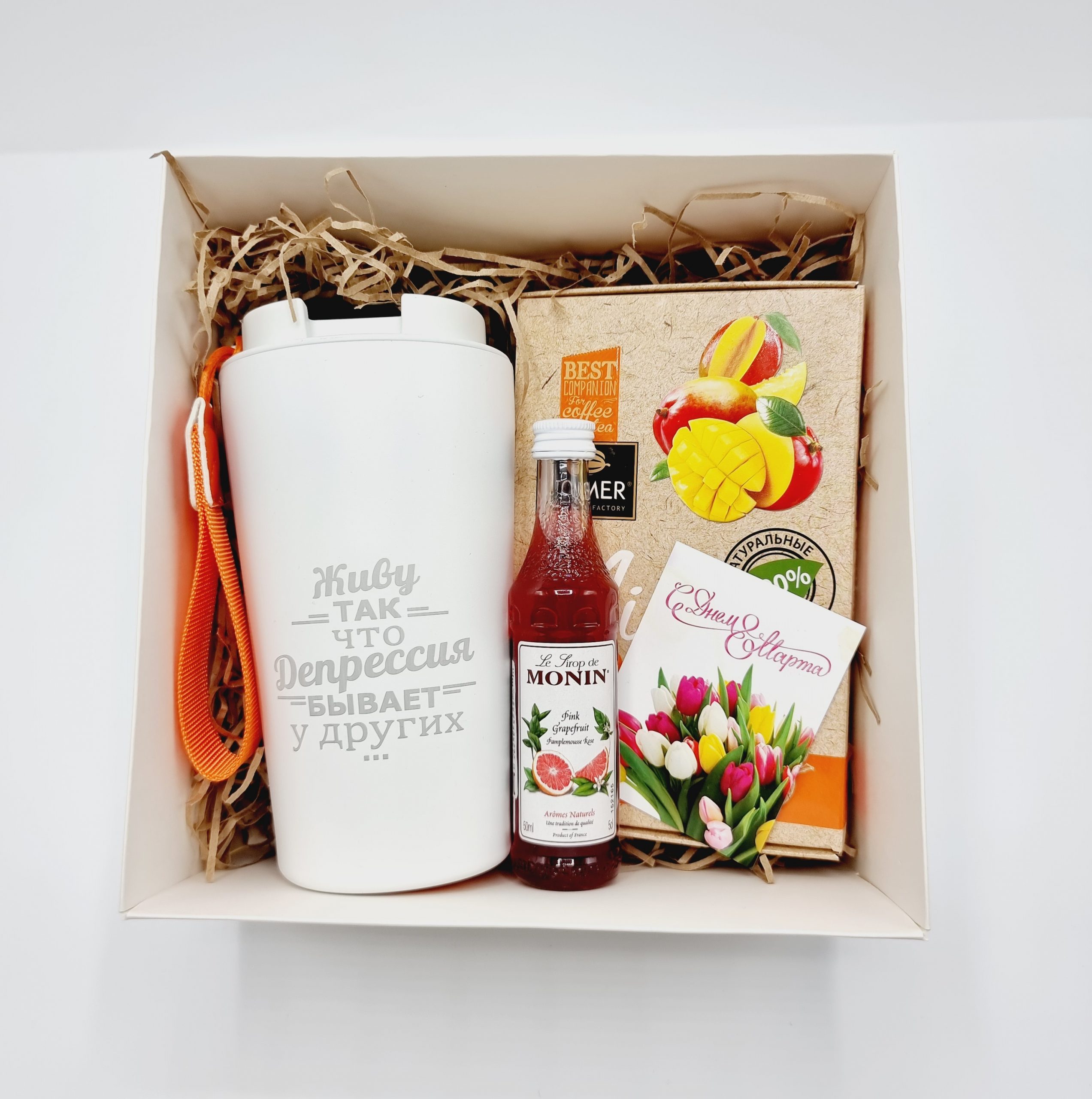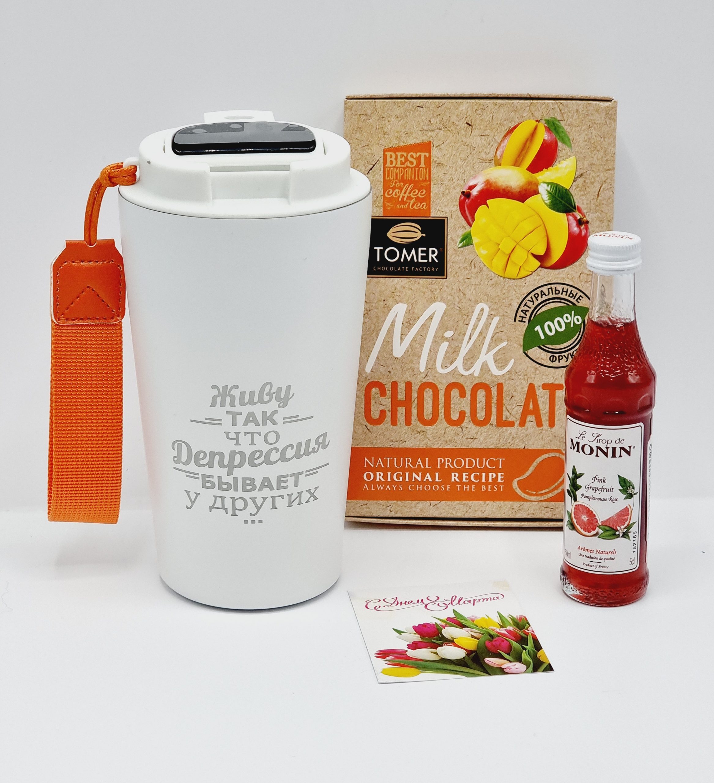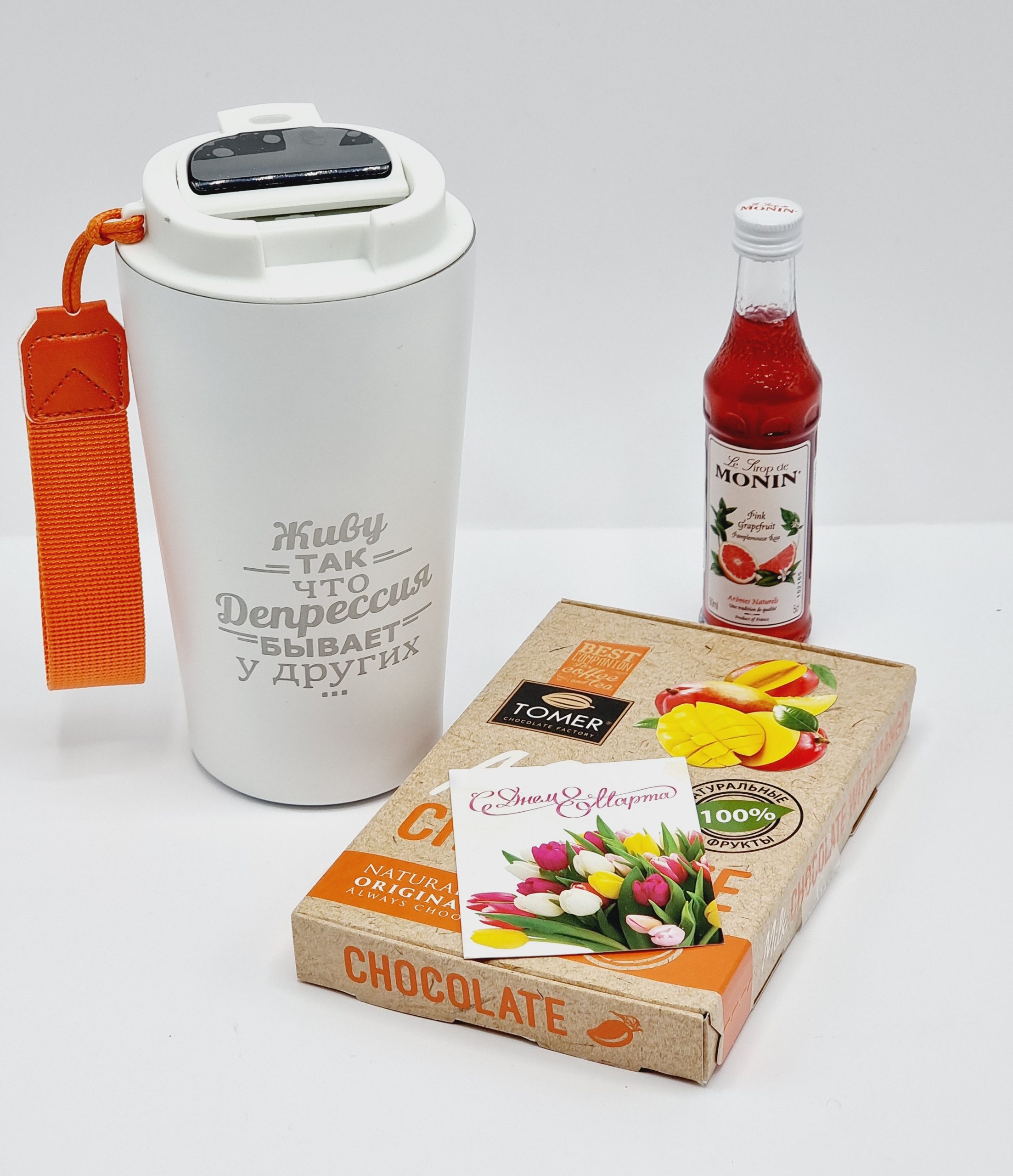 Главная страница » Подарки на праздники » Подарки на 8 марта » Подарочные боксы на 8 марта » “Яркой жизни” подарочный набор: термокружка с индикатором, шоколад и сироп
