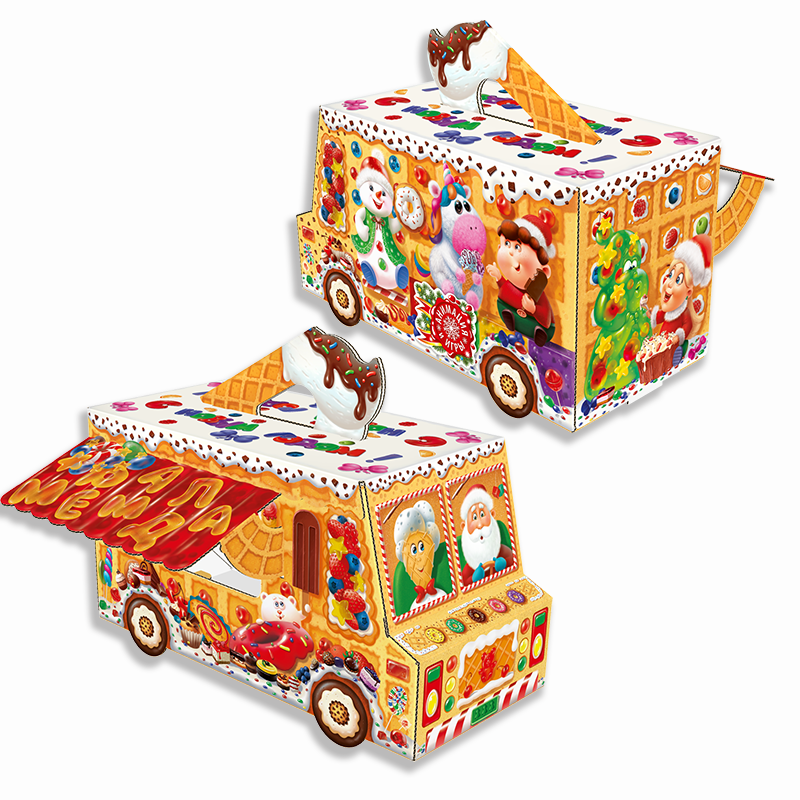 Главная страница » Uncategorized » Сладкие новогодние подарки » №1007 Фургончик Мороженое 1500 г премиальный DIUNA новогодний подарок