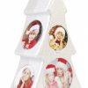 Фоторамка на восемь фотографий. Звездочка на верхушке одновременно является кнопкой, при нажатии на которую елочка начинает крутиться. При повторном нажатии елочка останавливается.