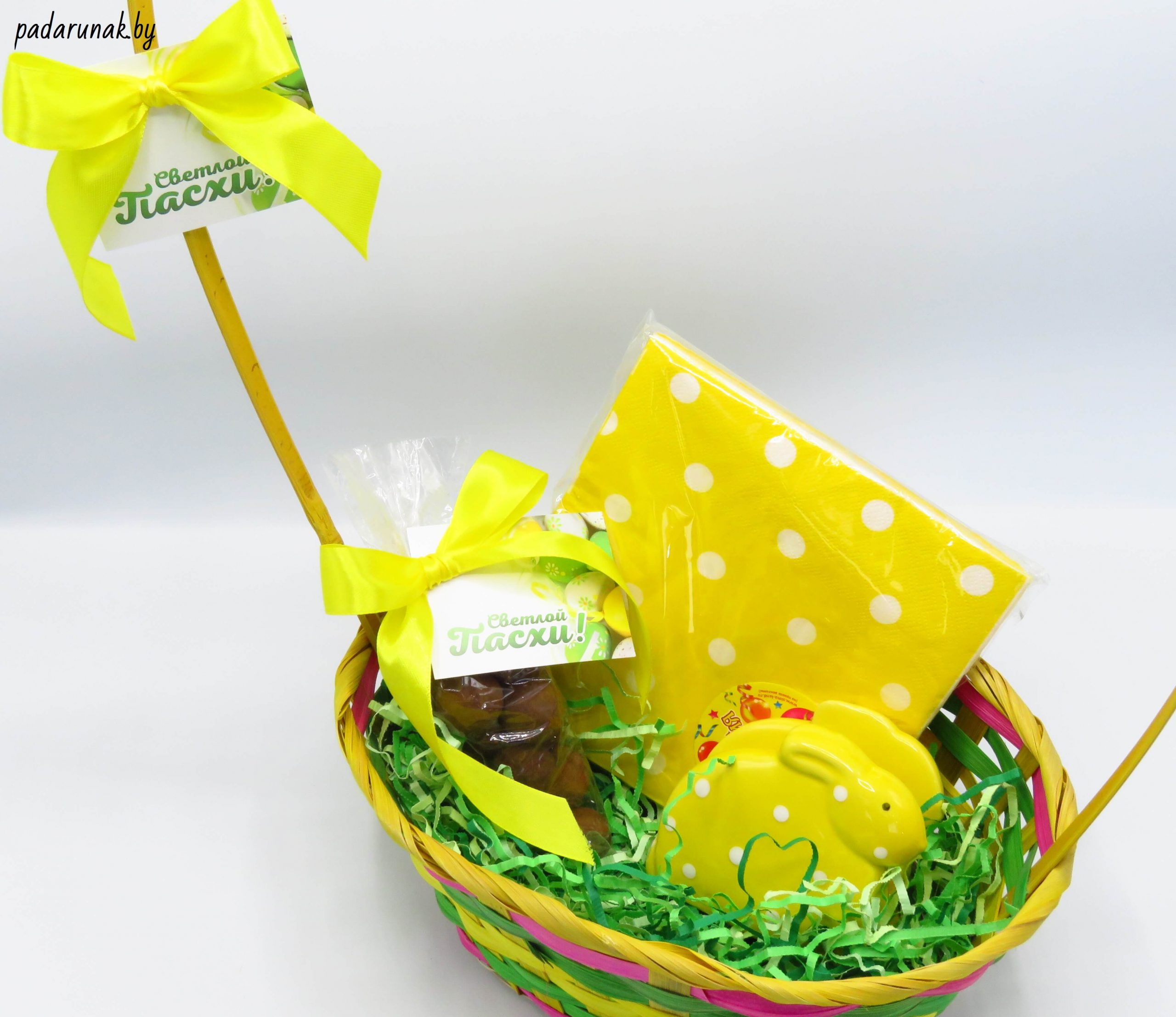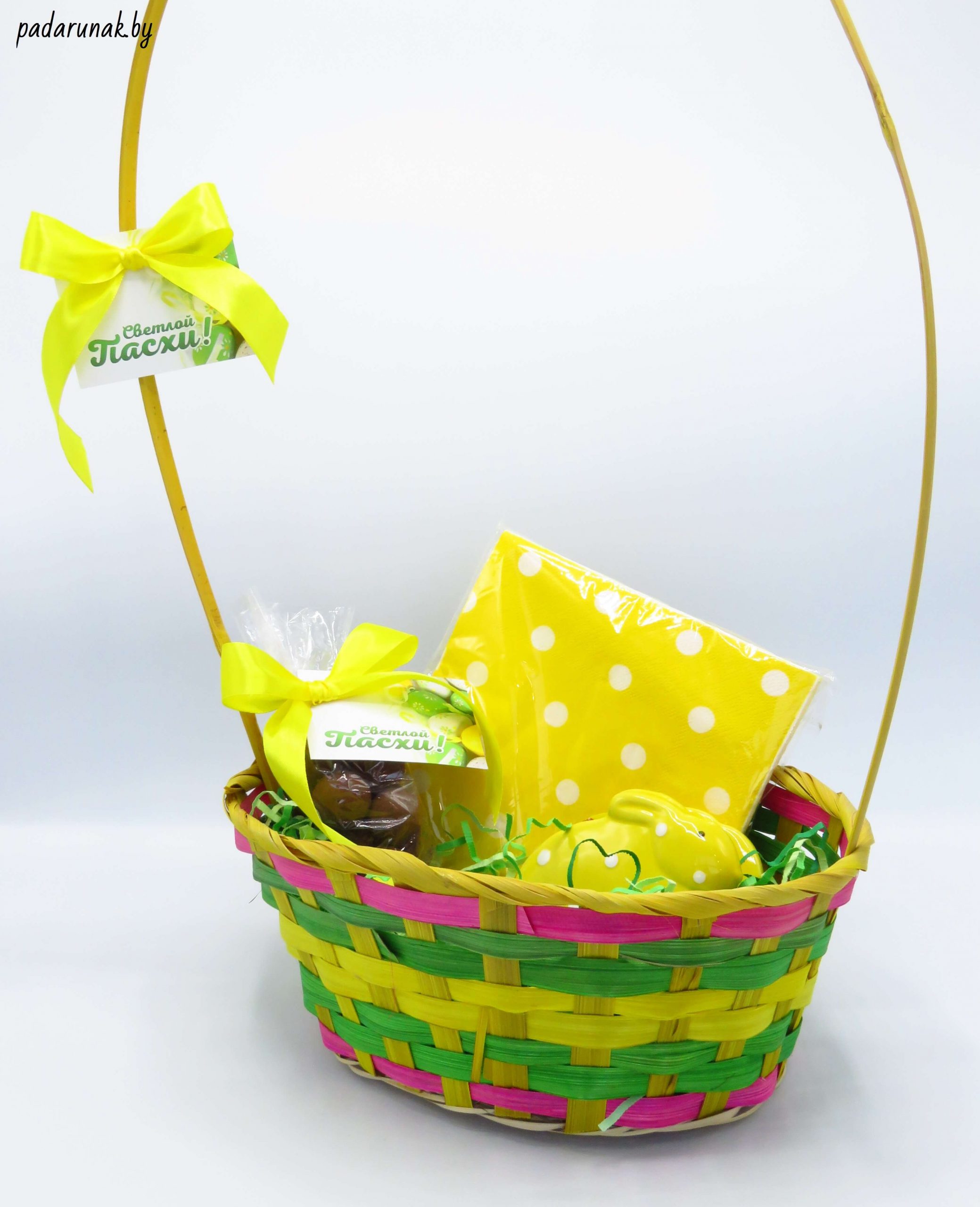 В набор "Пасхальная композиция" входит:- Корзина - материал бамбук, 27 см х 19 см х 53 см;