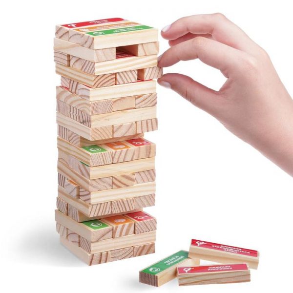 Знаменитая «Дженга» в новом исполнении! 100 % натуральное дерево! Кто самый ловкий и смелый? Собирайте друзей, стройте башню и начинайте играть! Доставайте бруски и выполняйте задания-фанты. Веселитесь всей компанией!Соревнования для самых ловких!