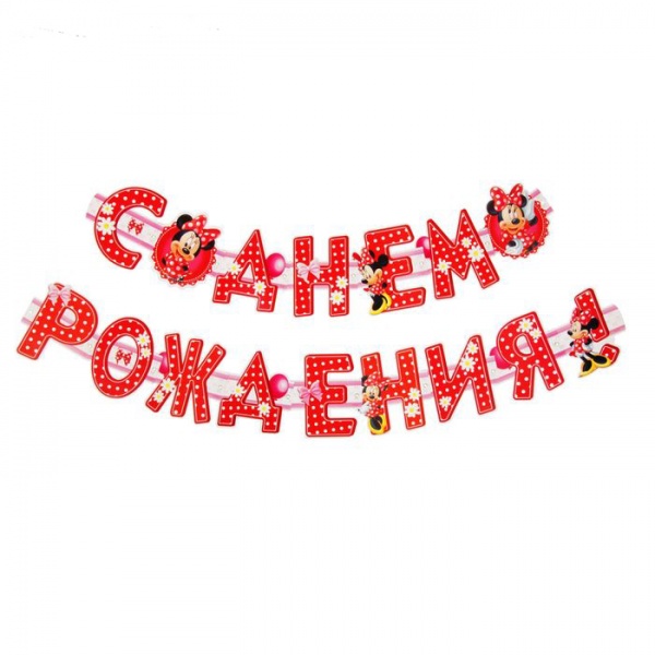 Главная страница » Подарки на праздники » Украшения для праздника » Гирлянды на ленте » Гирлянда на люверсах “С Днем Рождения!”, Минни Маус, дл. 205 см 1971032