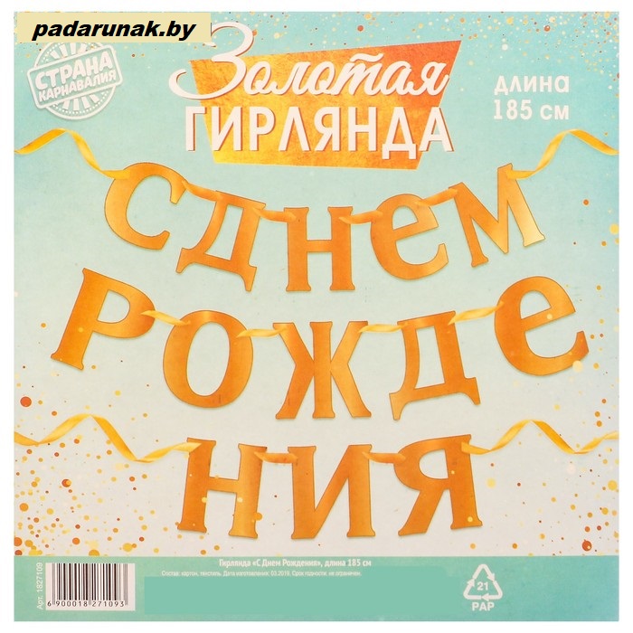 Гирлянда станет отличным атрибутом праздника, а также подарком или дополнением к нему. Идеальное украшение для мероприятия на природе. Вам достаточно развесить гирлянду между деревьев или оформить арку с её помощью. Такое украшение не потребует от вас больших усилий.Размер (Длина × Ширина × Высота) - 12 см х 185 см х 0,5 см