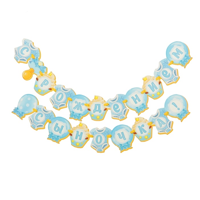 Рождение малыша — самое радостное событие в жизни родителей! Гирлянда создаст особую атмосферу праздника в этот важный день и украсит любое помещение. Изделие отличается оригинальной формой, яркостью печати и эксклюзивным дизайном. Принт находится только с одной стороны. Дарите близким радость с очаровательными украшениями и подарками!Плотность, г/м² - 250