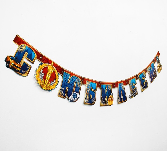 Гирлянда «С юбилеем!» для праздничного оформления помещений создаст неповторимое настроение торжества. Оригинальная форма, яркость печати и эксклюзивный дизайн помогут сделать праздник незабываемым. Буквы скреплены с помощью люверсов, что позволяет свободно трансформировать гирлянду. На лицевой стороне напечатана красочная надпись. Аксессуар легко крепится на стену или дверной проём с помощью клейкой ленты или кнопок.Плотность 250 г/м²