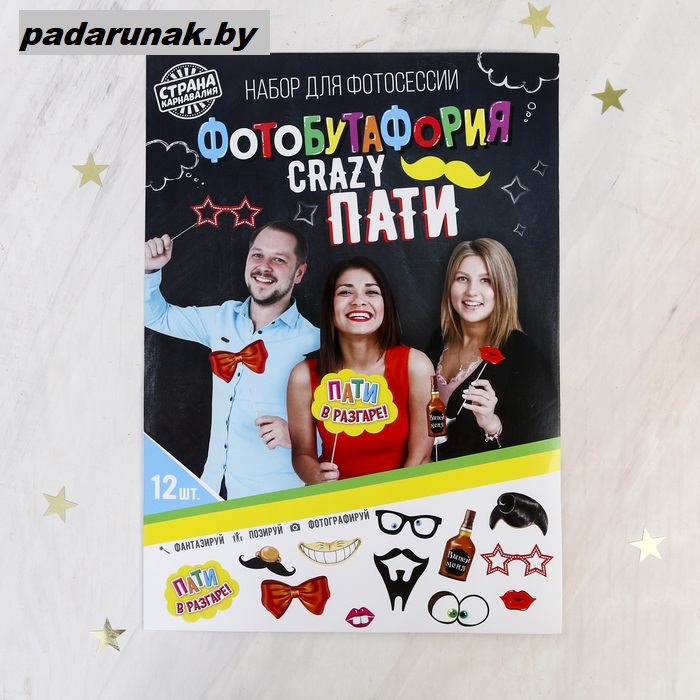 Главная страница » Подарки на праздники » Украшения для праздника » Набор фотобутафории “Крейзи пати”, 12 предметов