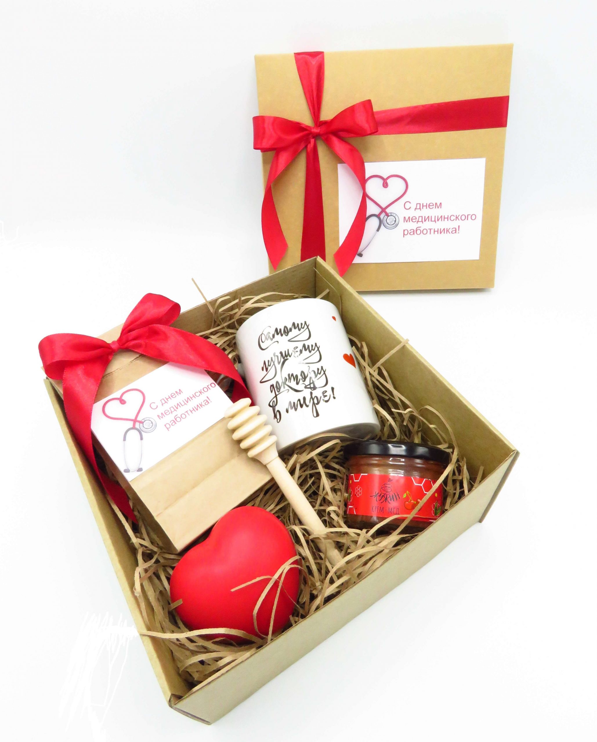 В подарочный бокс "С днем медицинского работника" входит:- Крем - мед с малиной "Жужин Мёд" - 120г;