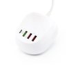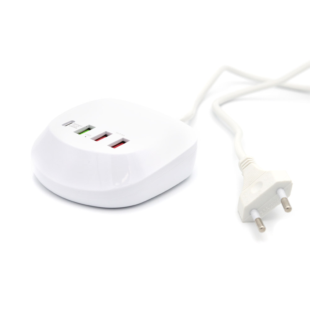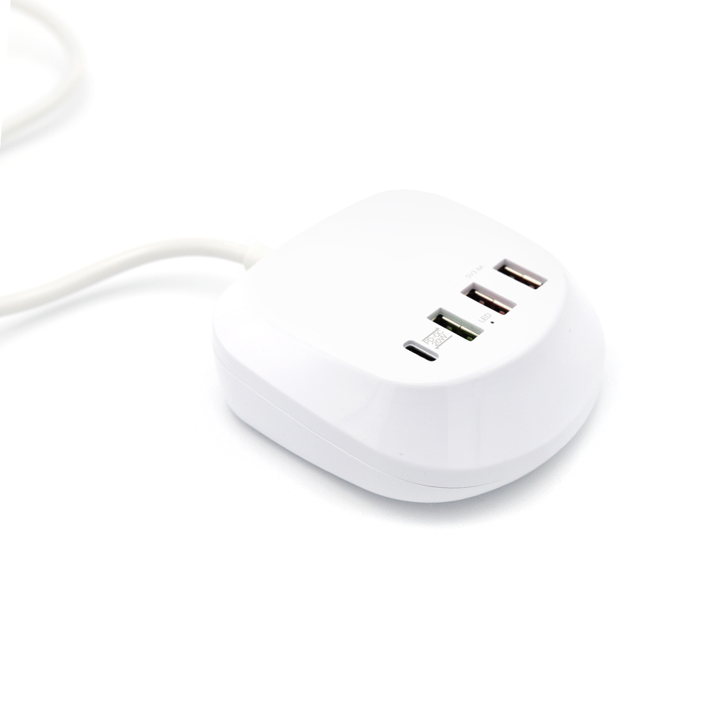 Универсальная платформа для зарядки гаджетов, с возможностью одновременного подключения 4 устройств. Порт Type-C подойдет для ноутбуков и нетбуков, порты USB позволяют при помощи кабеля с нужным типом порта осуществить зарядку мобильных телефонов, планшетов, наушников, часов. Наличие порта с функцией QC позволяет заряжать устройство в ускоренном режиме. Платформа выполнена из негорючего пластика, имеет встроенные компоненты предохраняющие устройства от перепадов напряжения.