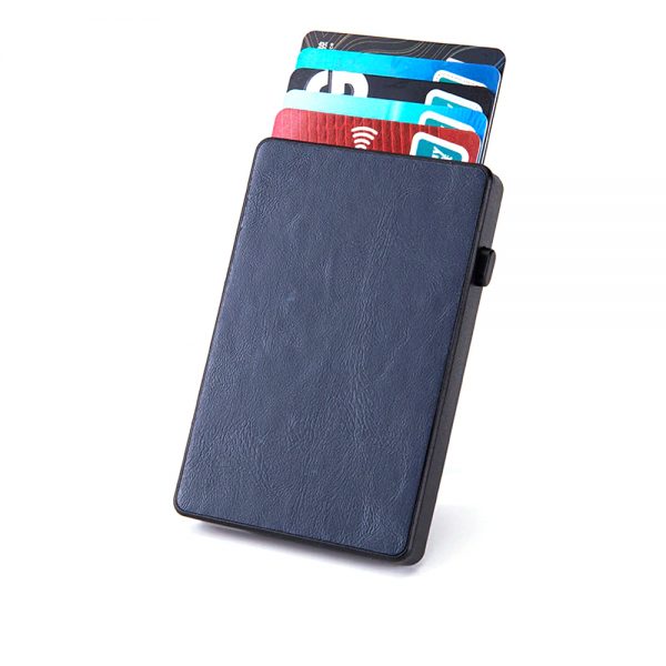 Современный практичный способ хранить и использовать банковские карты - металлический держатель Amir с приятным покрытием из искусственной кожи. Бокова кнопка позволяет легко извлекать карты из бокса с защитным покрытием против копирования данных.