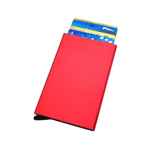 Современный практичный способ хранить и использовать банковские карты - металлический держатель Visir. Кнопка снизу позволяет легко извлекать карты из бокса с защитным покрытием против копирования данных.