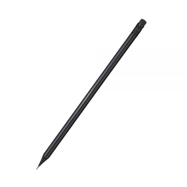 Деревянный цветной карандаш NEGRO с черным ластиком. Цвет грифеля черный, заточенный. Дерево черного цвета. Краска глянцевая.