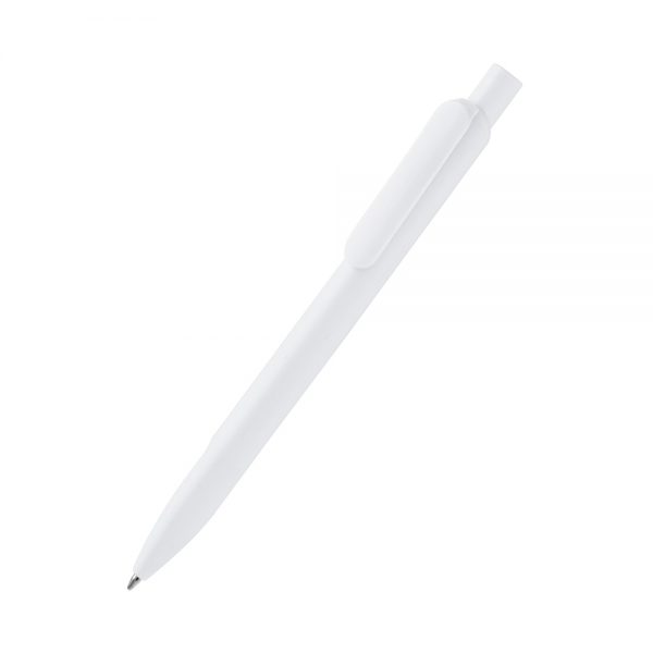 Пластиковая ручка, синие чернила. Нанесение осуществляется методом УФ или тампопечати.